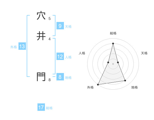穴井 門さんの外格は13画の5点!