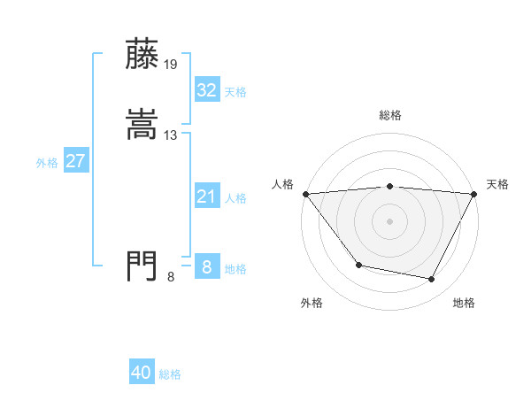 藤嵩 門さんの地格は8画の4点!