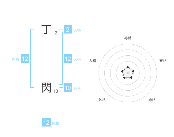 丁 閃さんの総格は12画の1点!