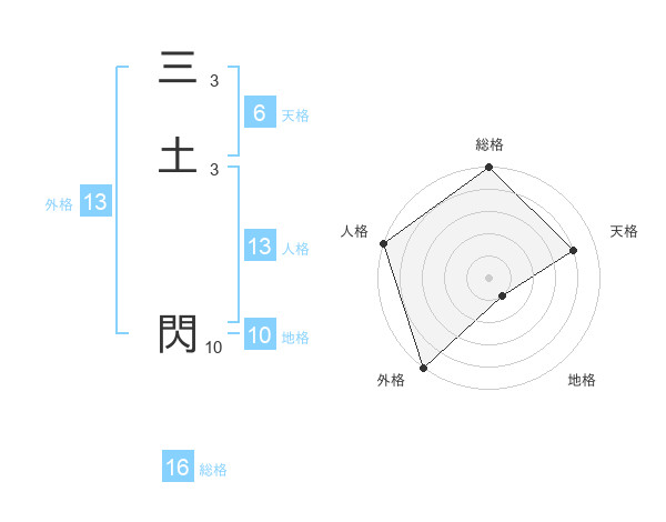 三土 閃さんの外格は13画の5点!