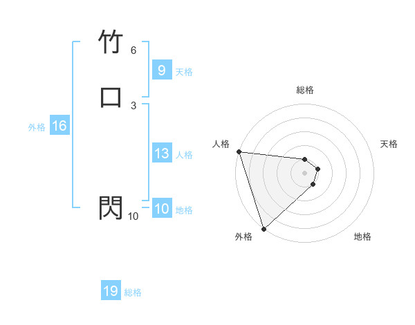 竹口 閃さんの総格は19画の1点!