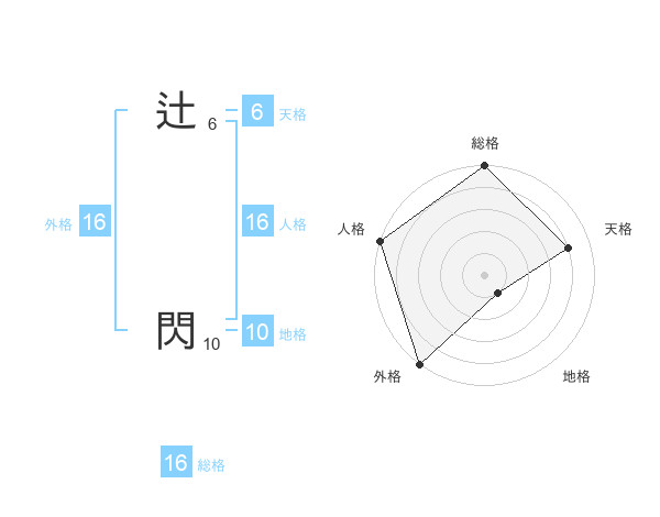 辻 閃さんの総格は16画の5点
