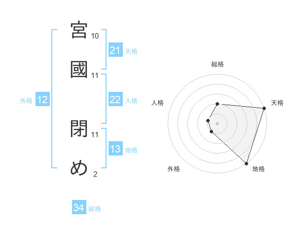 宮國 閉めさんの総格は34画の2点!