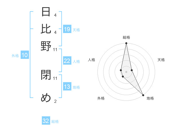 日比野 閉めさんの地格は13画の5点!