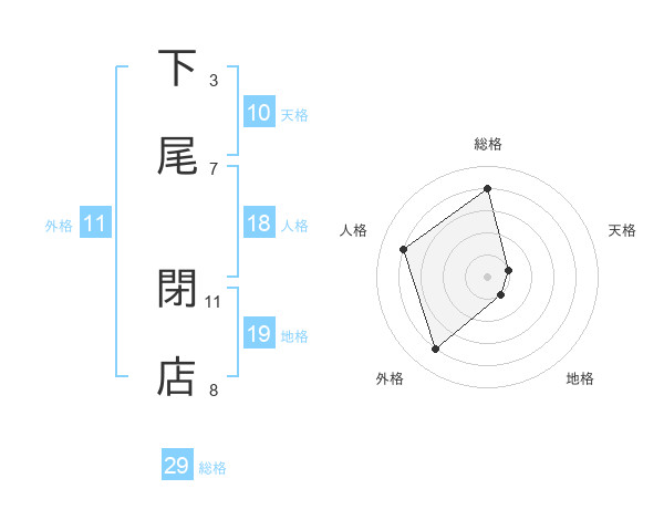下尾 閉店さんを姓名の画数から五運を鑑定
