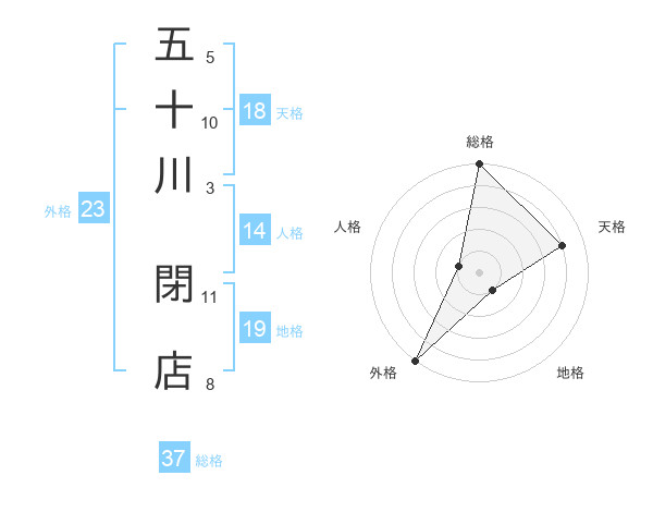 五十川 閉店さんの総格は37画の5点!