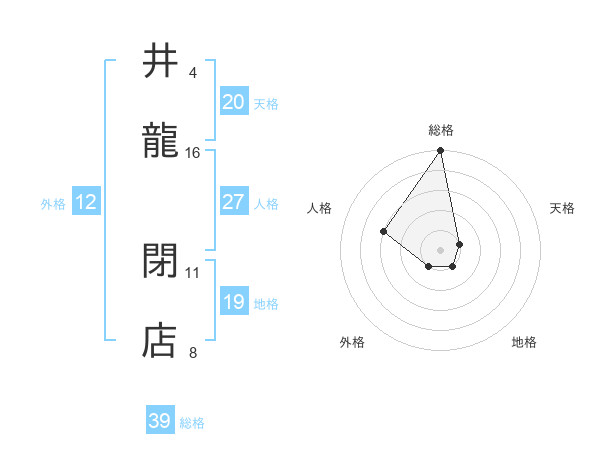 井龍 閉店さんの総格は39画の5点!