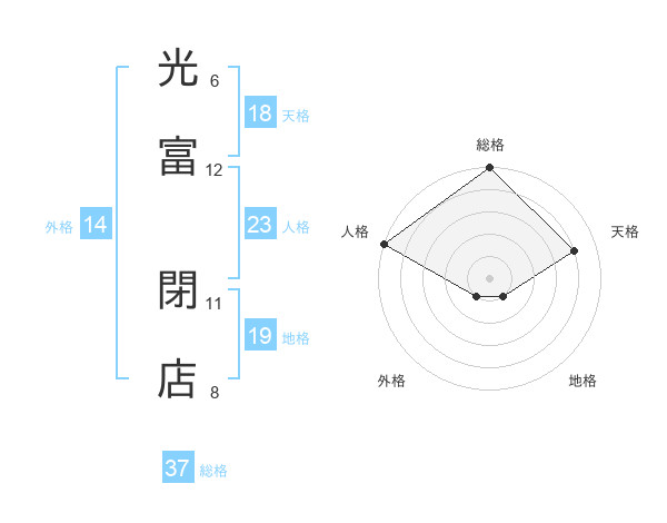 光富 閉店さんの総格は37画の5点!