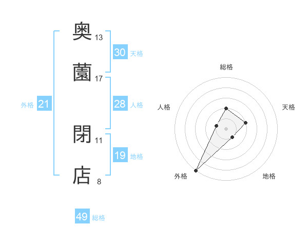 奥薗 閉店さんを姓名の画数から五運を鑑定