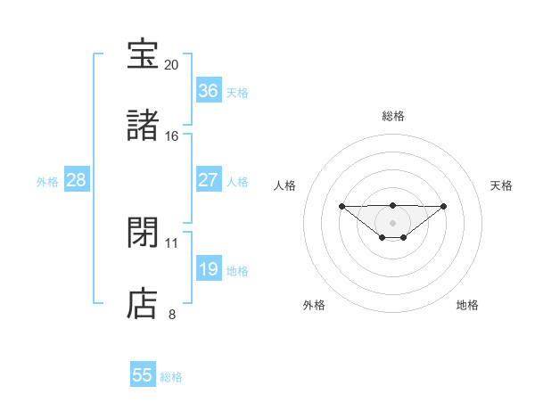 宝諸 閉店さんの総格は55画の1点!