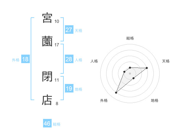 宮薗 閉店さんを姓名の画数から五運を鑑定