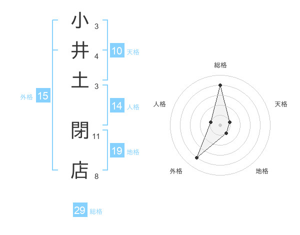 小井土 閉店さんの総格は29画の4点!
