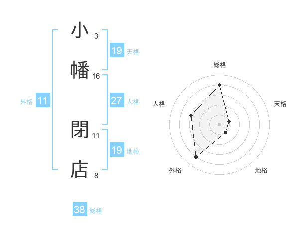 小幡 閉店さんを姓名の画数から五運を鑑定