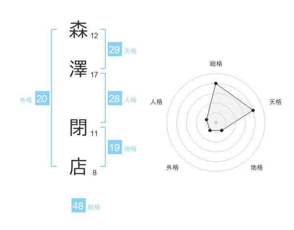 森澤 閉店さんの総格は48画の4点!
