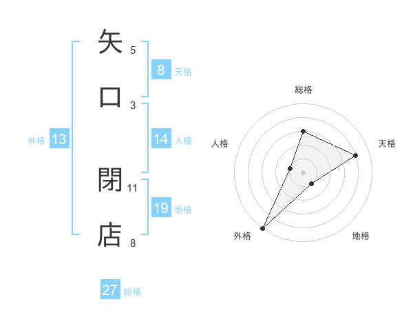 矢口 閉店さんの総格は27画の3点!