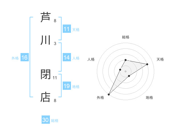 芦川 閉店さんの総格は30画の2点!