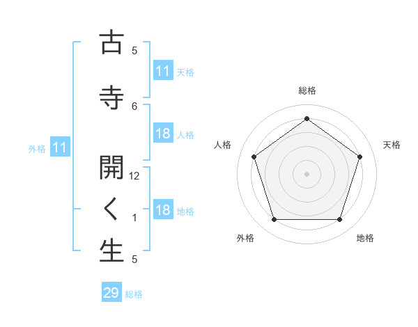 古寺 開く生さんを姓名の画数から五運を鑑定