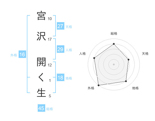 宮沢 開く生さんを姓名の画数から五運を鑑定