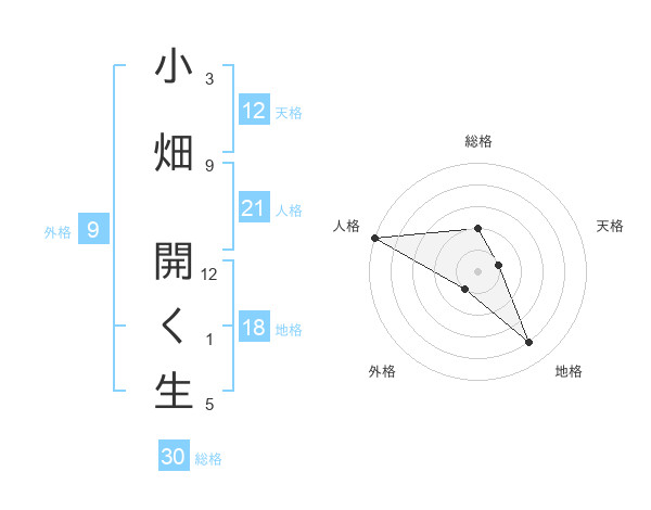 小畑 開く生さんを姓名の画数から五運を鑑定