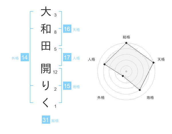 大和田 開りくさんを姓名の画数から五運を鑑定