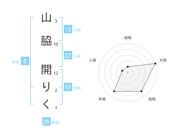 山脇 開りくさんの天格は13画の5点