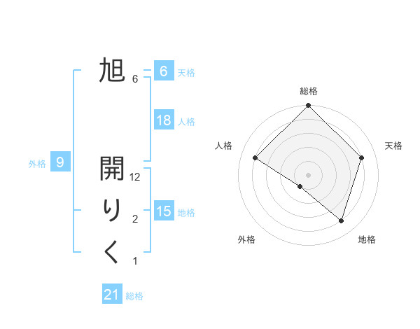 旭 開りくさんの総格は21画の5点!