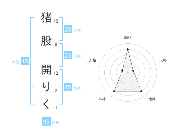 猪股 開りくさんを姓名の画数から五運を鑑定