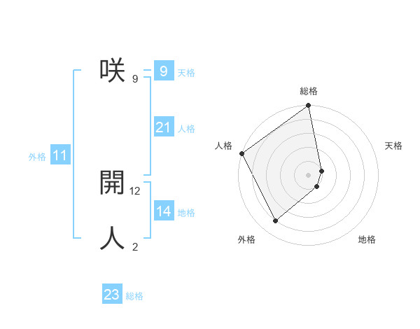 咲 開人さんの総格は23画の5点!