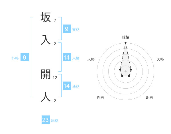 坂入 開人さんの総格は23画の5点!