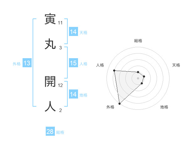 寅丸 開人さんの外格は13画の5点!