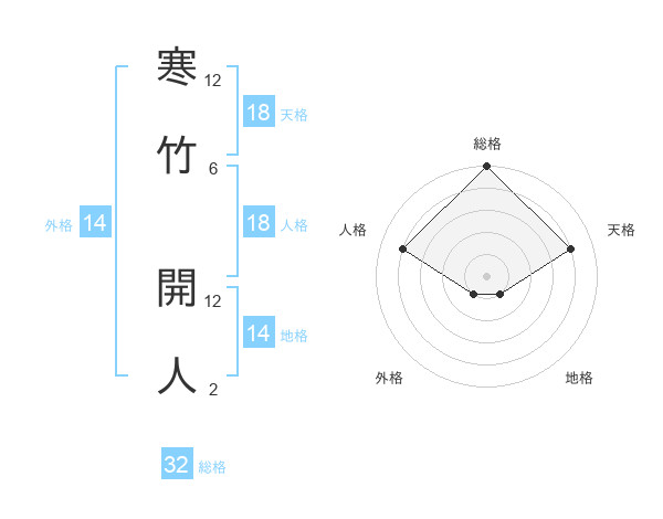 寒竹 開人さんを姓名の画数から五運を鑑定