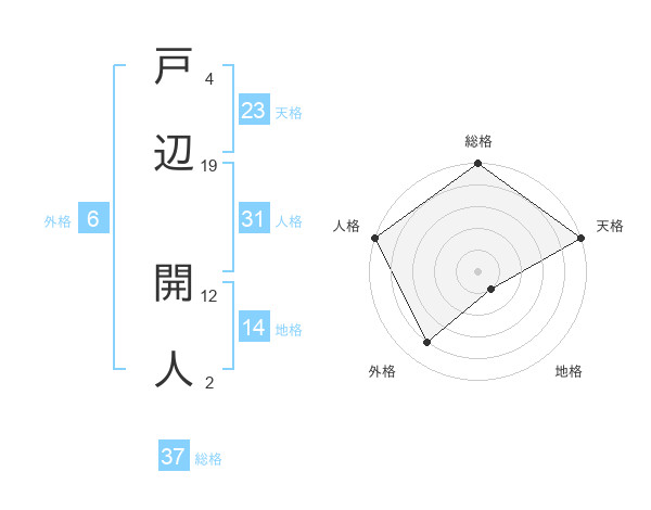 戸辺 開人さんを姓名の画数から五運を鑑定