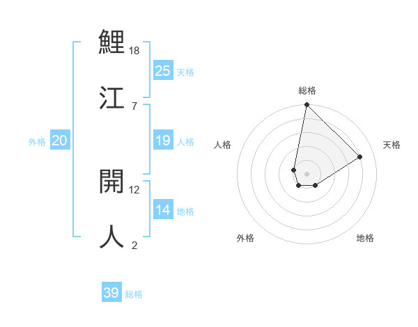 鯉江 開人さんを姓名の画数から五運を鑑定