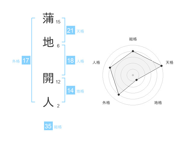 蒲地 開人さんの天格は21画の5点