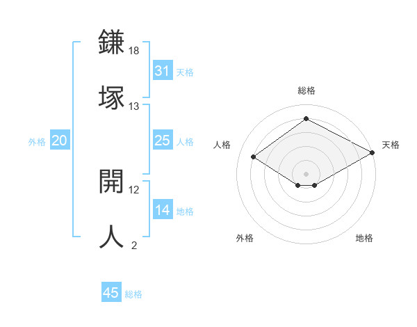 鎌塚 開人さんを姓名の画数から五運を鑑定