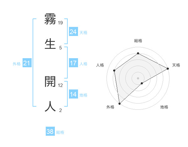 霧生 開人さんの総格は38画の4点!