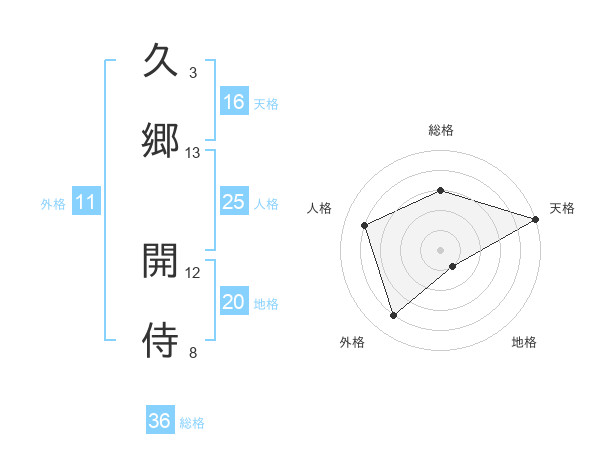 久郷 開侍さんの地格は20画の1点!