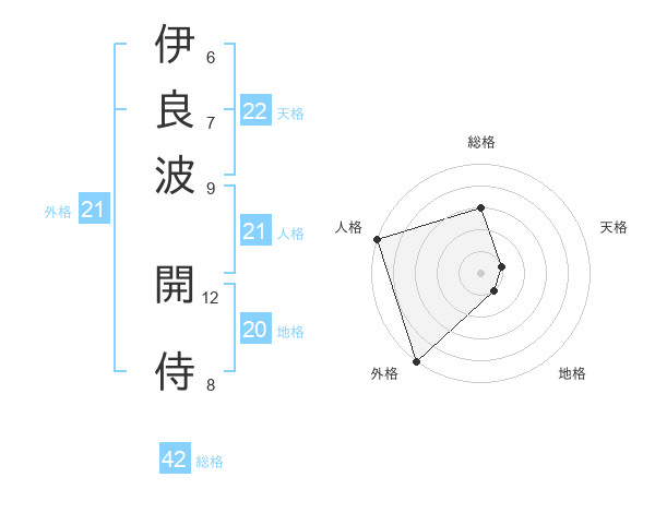 伊良波 開侍さんを姓名の画数から五運を鑑定