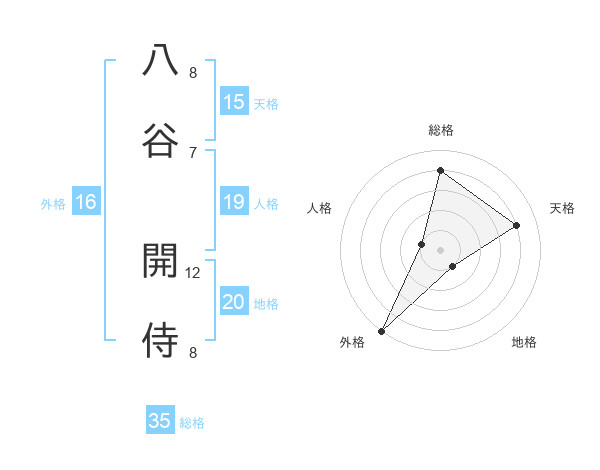 八谷 開侍さんを姓名の画数から五運を鑑定