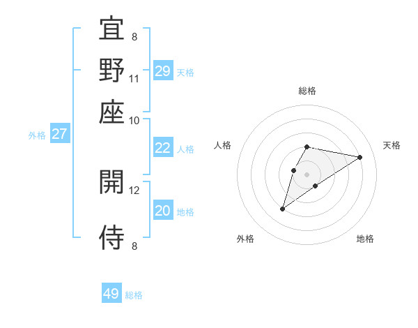 宜野座 開侍さんの総格は49画の2点!