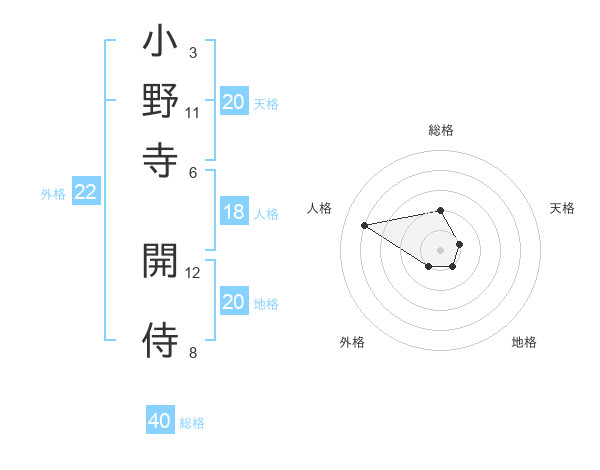 小野寺 開侍さんを姓名の画数から五運を鑑定
