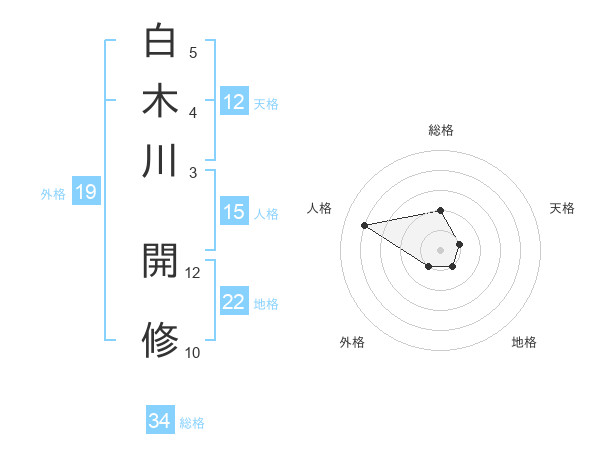 白木川 開修さんの地格は22画の1点!
