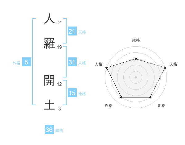 人羅 開土さんの外格は5画の4点!
