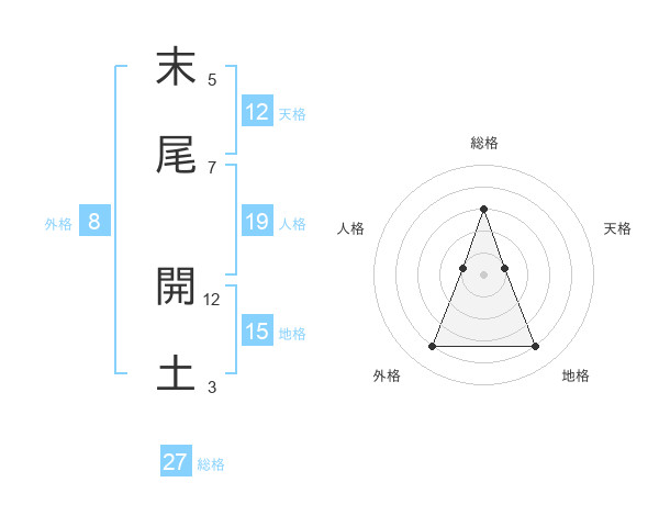 末尾 開土さんの人格は19画の1点!