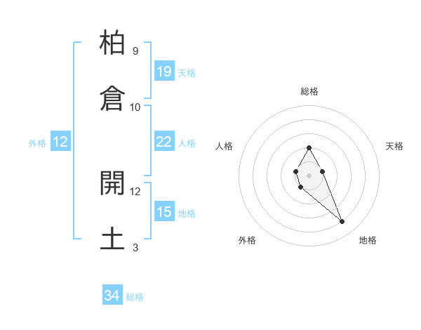 柏倉 開土さんを姓名の画数から五運を鑑定