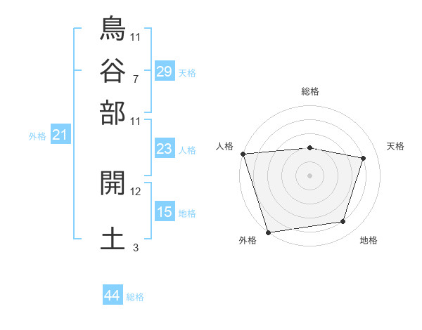 鳥谷部 開土さんを姓名の画数から五運を鑑定