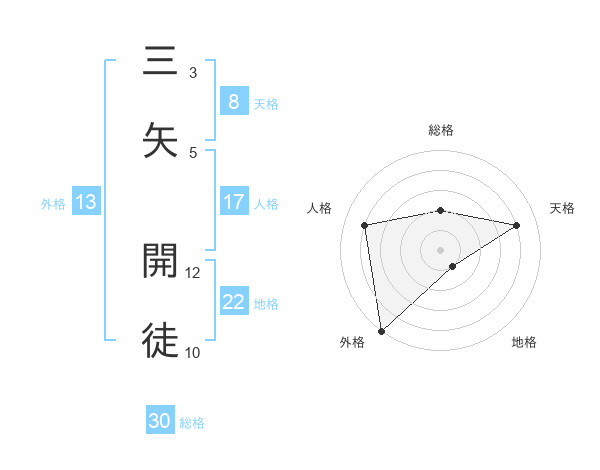 三矢 開徒さんを姓名の画数から五運を鑑定