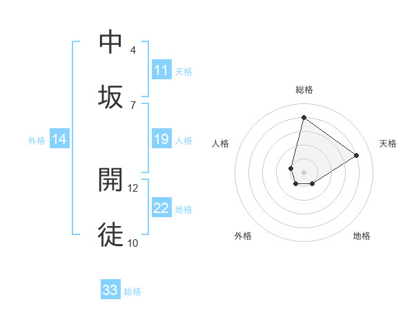 中坂 開徒さんを姓名の画数から五運を鑑定