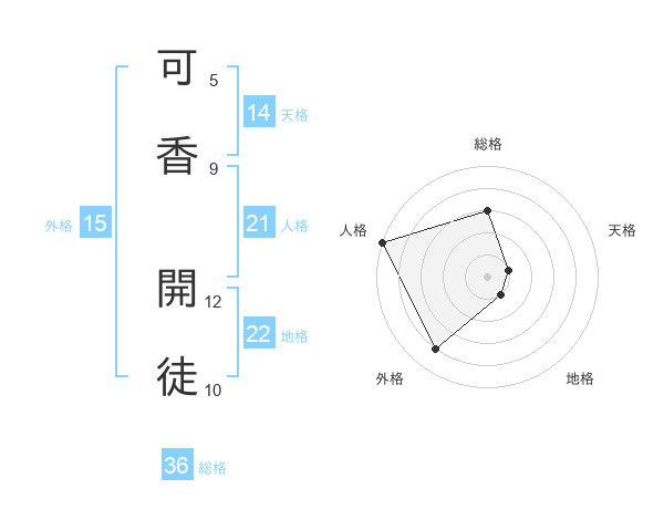 可香 開徒さんの外格は15画の4点!
