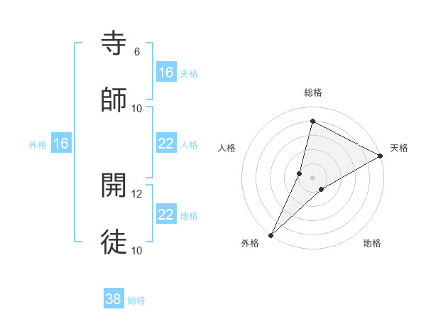 寺師 開徒さんの総格は38画の4点!